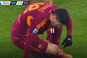 24直播网12月30日讯 罗马球员苏莱在意甲对阵热那亚的比赛中,开场14分钟破门后,于第56分钟无对抗情况下右膝受伤被换下。他自行离场,膝部已贴保护胶带,赛后将接受进一步检查以确定伤势。