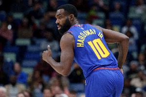 掘金球员小哈达威上半场替补出场表现出色,不仅外线投得很准,其中打成一次3+1,还造成一次三分犯规。